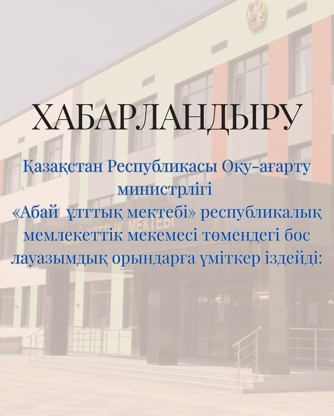 Қазақстан Республикасы Оқу-ағарту министрлігі «Абай ұлттық мектебі» республикалық мемлекеттік мекемесі…