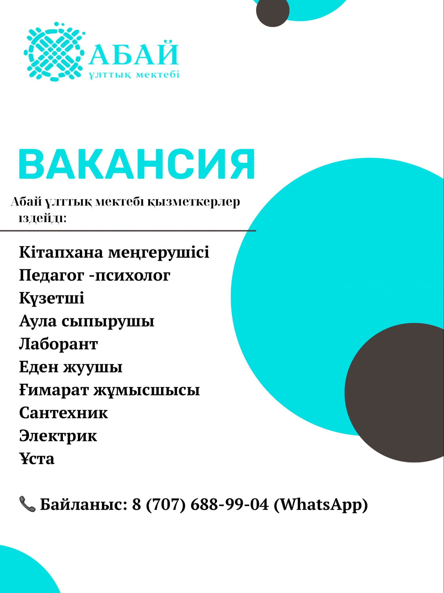 Қазақстан Республикасы Оқу-ағарту министрлігі «Абай ұлттық мектебі» республикалық мемлекеттік мекемесі…